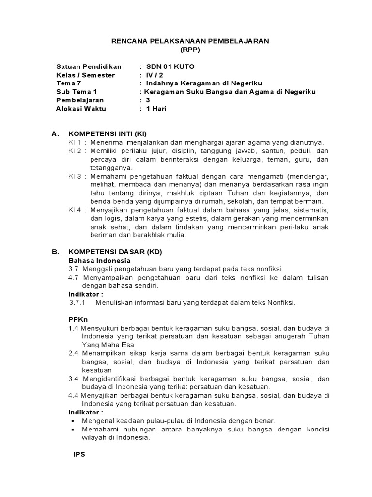 Rpp kelas 6 kurikulum 2013 revisi 2018 ini admin bagikan dengan lengkap dimana didalamnya telah dilengkapi dengan ki1, ki2, ki3 dan ki4, dengan tujuan untuk menumbuhkan sikap spiritual, sikap sosial, pengetahuan dan. Rpp kelas 1 tema 5 subtema 3 pembelajaran 4. Rangkuman materi kelas 5 tema 7 subtema 1 peristiwa kebangsaan masa penjajahan pembelajaran 1, 2 & 3. Www.instagram.com/pembelajaran_sd_kota_semarangterimakasih sahabat pendidikan yang telah menonton video pembelajaran kelas 5 tema 7 subtema. Contoh laporan pkp ut 2012 ipa kelas iv.